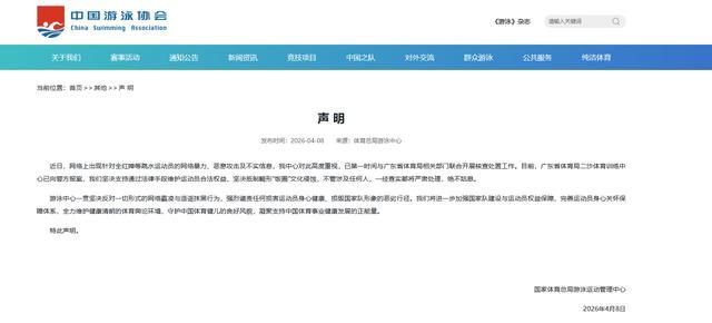 4月8日,中国游泳协会发布声明,文中明确表示: