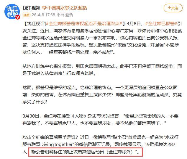 “禁止攻击其他运动员(全红婵除外)”。